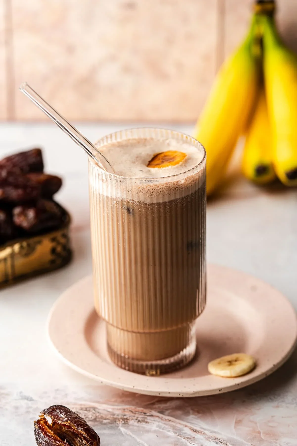 The Banana Date Latte is a naturally sweet, creamy coffee drink that’s both satisfying and wholesome. Made with fresh banana and fiber-rich dates, it offers a hint of caramel flavor and a thick, frothy texture, no added sugar needed. Totally customizable with cinnamon, chocolate, or nut butter, it’s a feel-good way to start your morning.