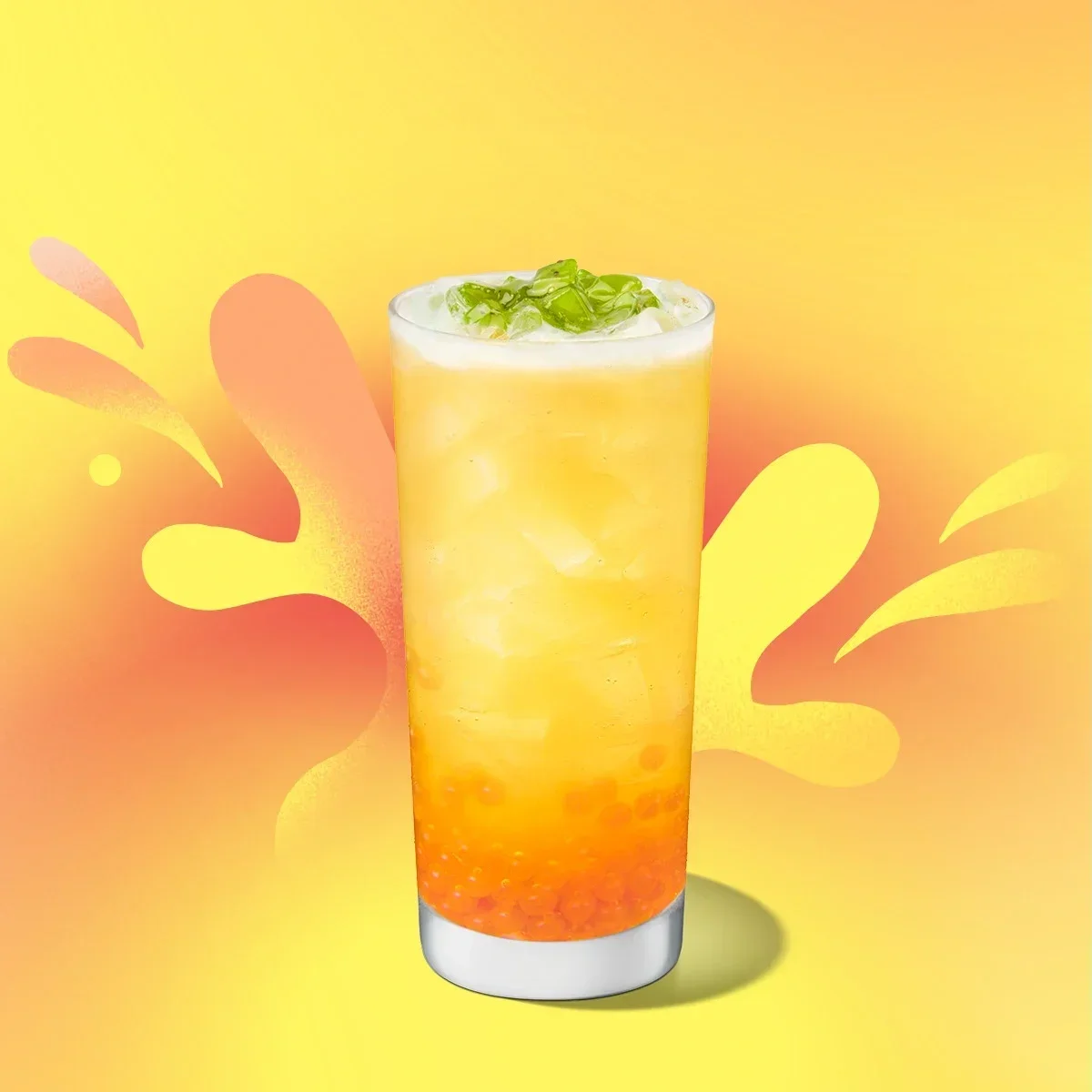 The Frozen Kiwi Passion Fruit Refresher with Glitter Pops is a tropical burst of color and flavor in every sip. Blended with tangy passionfruit, sweet kiwi, and creamy coconut milk, it’s finished with fun, glittery popping pearls that make it as playful as it is refreshing. With no caffeine and a naturally sweet, fruity taste, it’s a kid-friendly favorite that feels like a treat, perfect for sunny days and special moments.