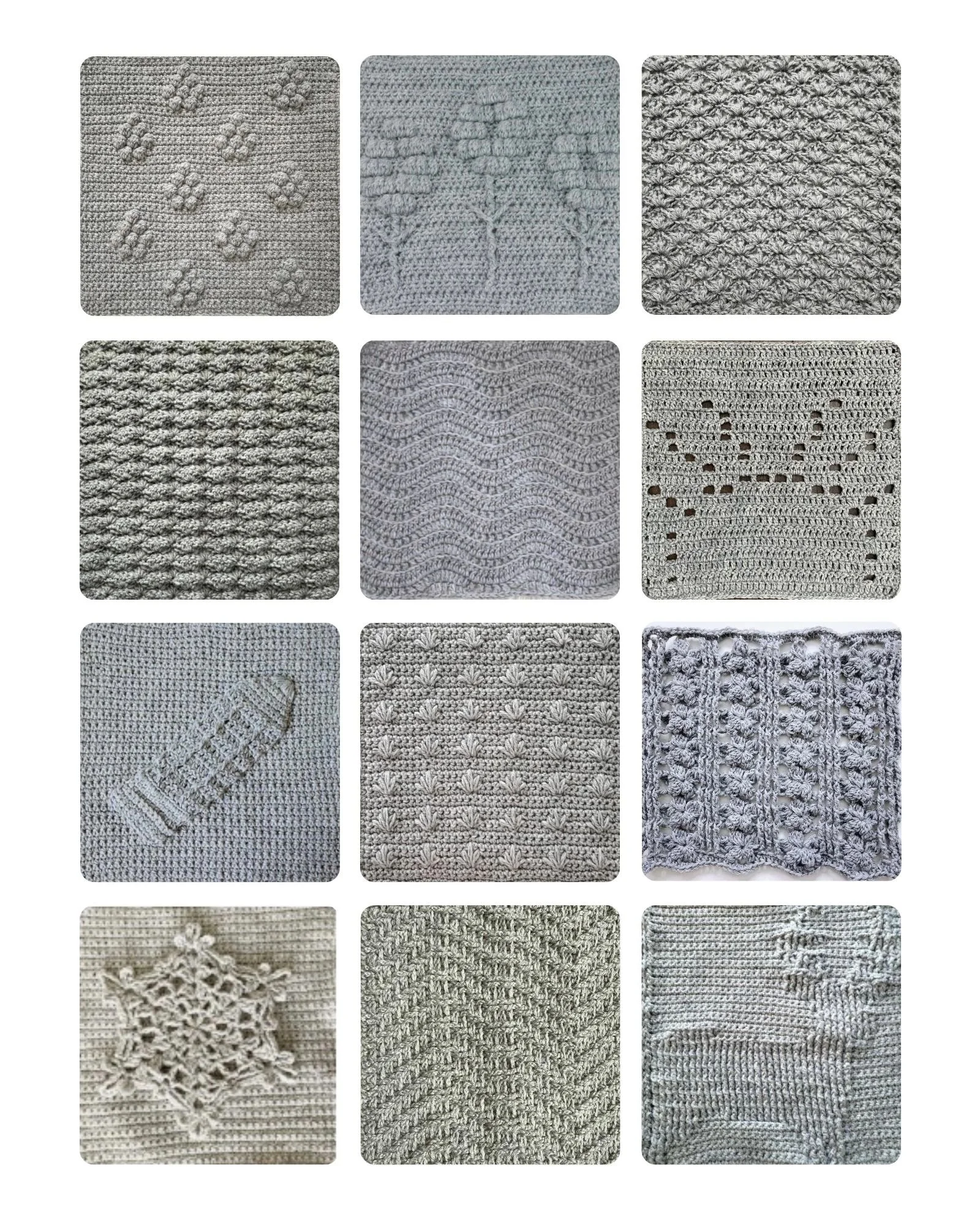 Tools: Every pattern will be using a J/10 (6mm) hook for each square. Adjust as needed to obtain gauge per pattern. You will also need scissors and a yarn needle to weave in your ends and seam the squares together as you go.