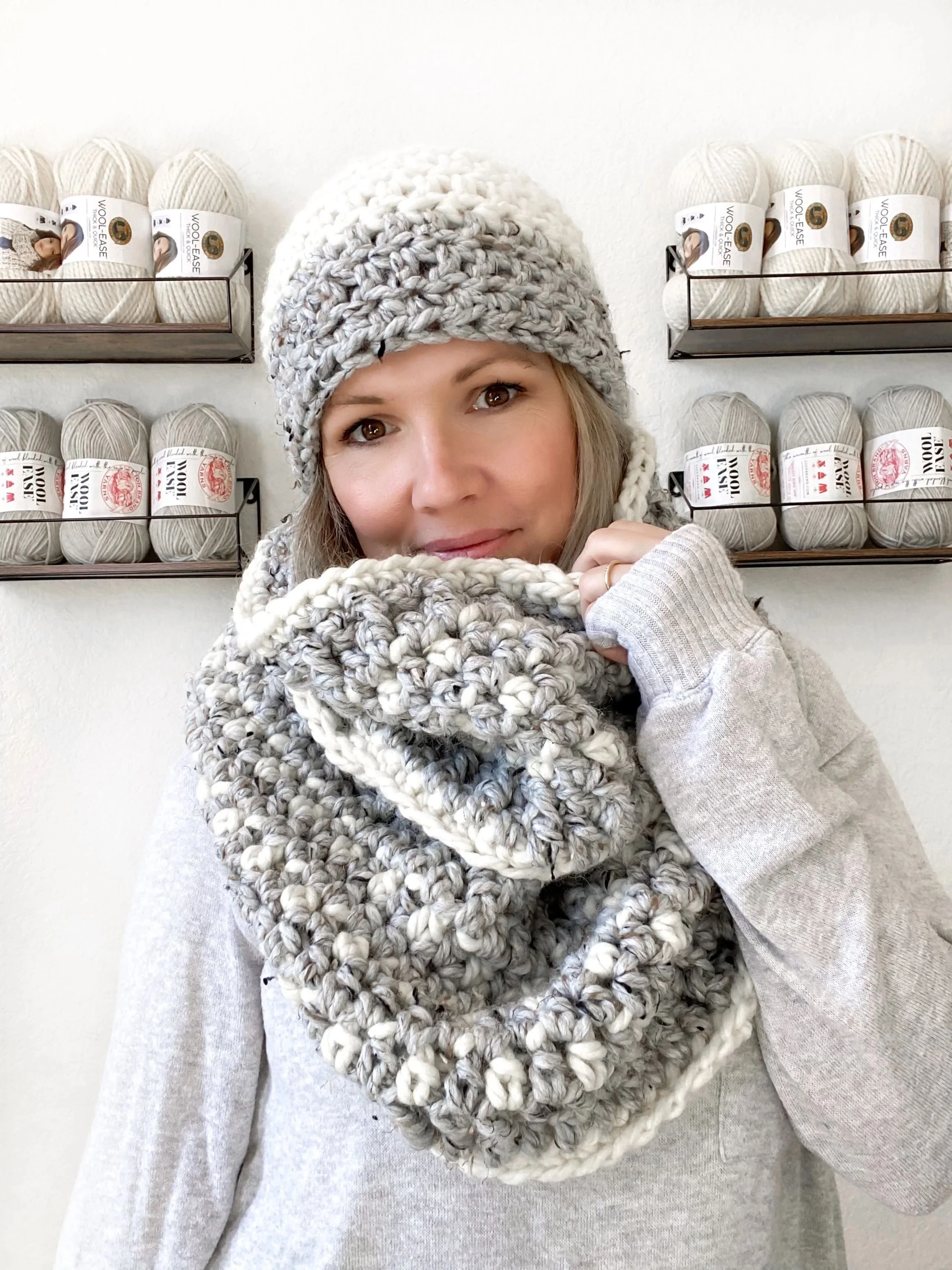 Keep sheltered from the cold in this double wrap Infinity Cowl. The bulky yarn and big hook, give this extra drape and coziness for easy styling.